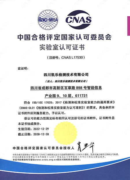凱樂檢測認證集團具備檢驗檢測機構資質認定(CMA)、實驗室認可(CNAS)資質,目前通過CMA的包括理化綜合、重金屬、農藥殘留有機物、獸藥殘留有機物、微生物、物理、輻射等檢測指標近4000項,涉及環(huán)境檢測領域的水和廢水、環(huán)境空氣和廢氣......